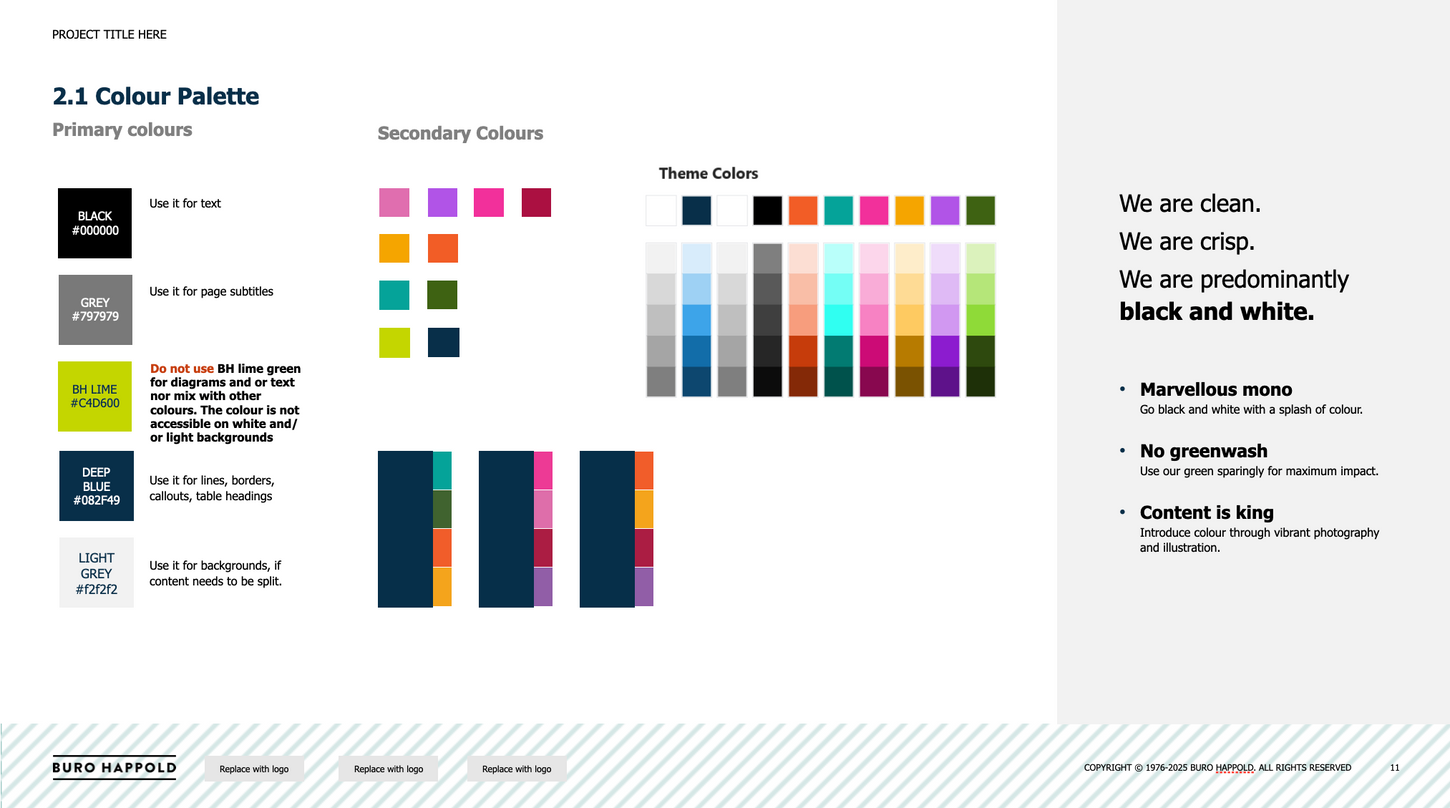 Large reports were being developed collaboratively in PowerPoint for ease of sharing and content input, but the final documents needed to be professionally designed in InDesign. This created a significant manual production burden, with content needing to be repeatedly reformatted and rebuilt. The challenge was to create a system that improved efficiency without compromising design quality, while also supporting brand consistency and future scalability.