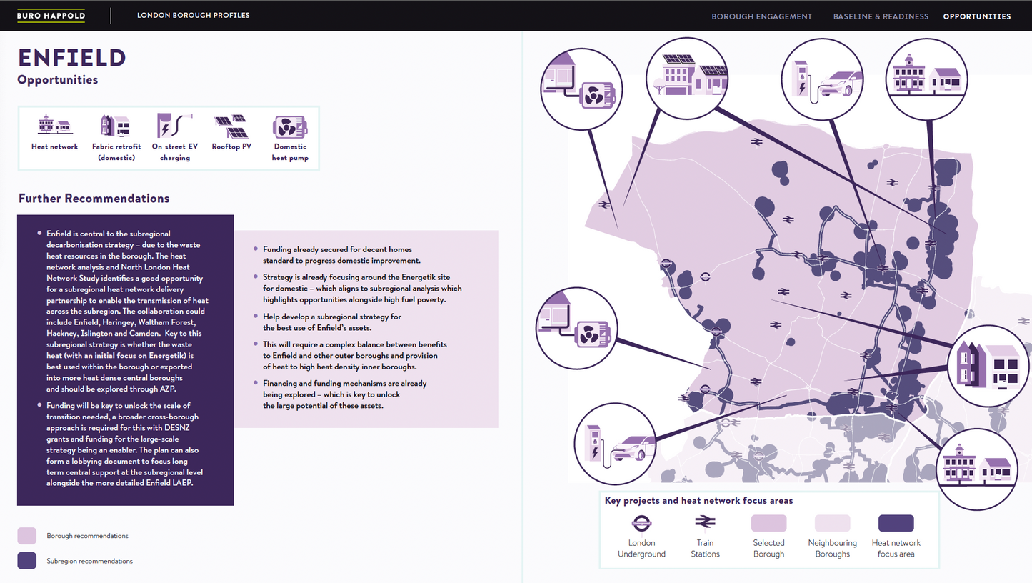 The challenge was to communicate a large volume of technical and strategic information across multiple borough groupings, including north, north east and south London. The material needed to support accurate assessment and implementation planning, while also being repeatable and consistent across a broad set of outputs. Without a stronger system, the process risked becoming too manual, fragmented and difficult to compare at scale.
